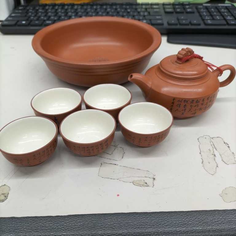 - N6865【アンティーク】中国 朱泥 煎茶セット