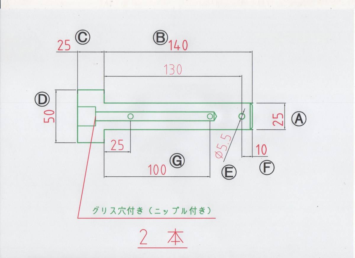 - NO 1217 φ25用 ツバ下140mm グリス穴2か所付きバケットピン 2本 1セット