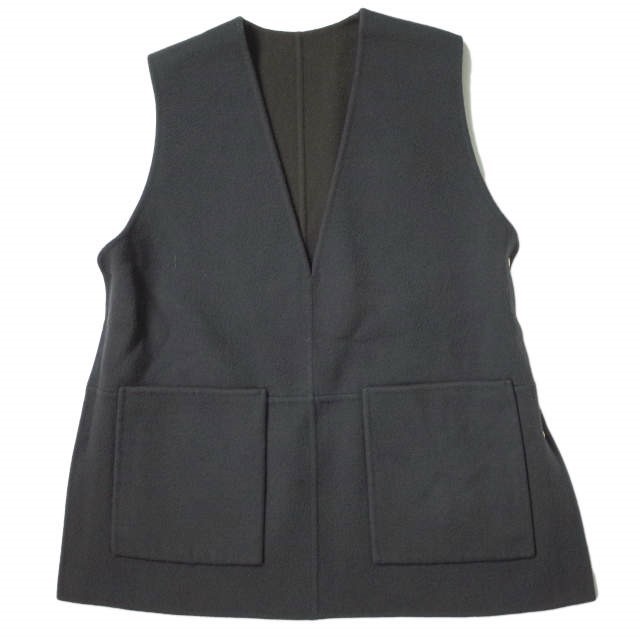 > Drawer ドゥロワー 21AW 日本製 ウールリバーコンビベスト 6521-234-0927 38 ブラウン/チャコールグレー リバーシブル サイドボタン g10272
