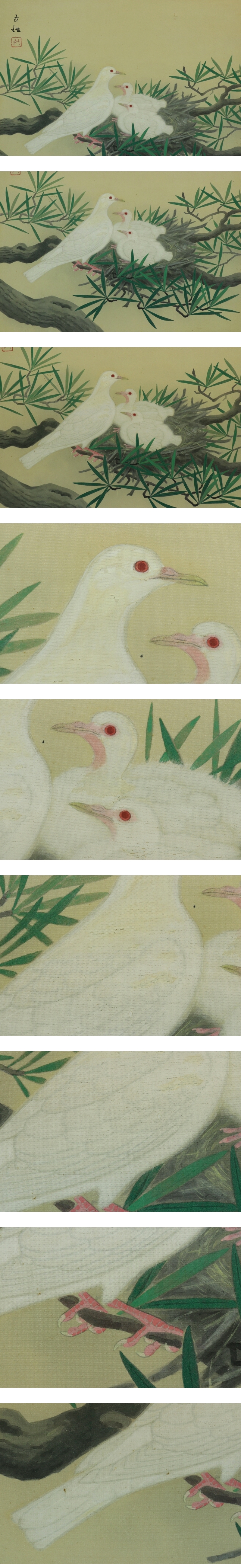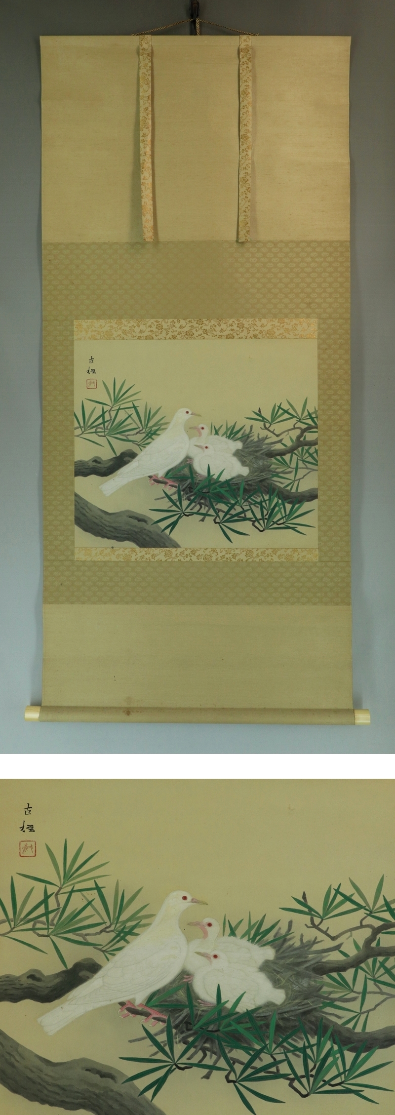 - 【模写】小林古径【白鳩】◆絹本◆共箱◆掛軸 u11048