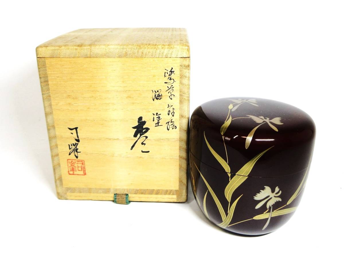 - 棗 鷺草 溜塗 蒔絵 新井司峰 造 在銘 共箱 茶道具 茶器 ★岡山発送★(広島発送品同梱不可)
