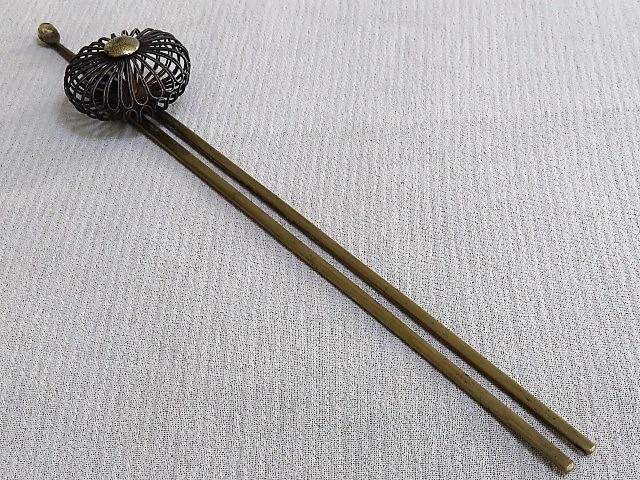 - 簪 かんざし 金工細工 菊花 簪 和装小物 時代