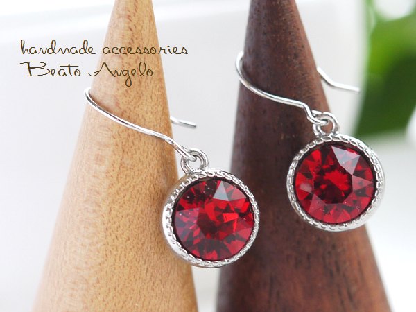> ◇◇+angelo+スワロフスキー 1088のピアス(p-109)スカーレット S シンプル 一粒 深紅 赤 秋冬 チタン 樹脂 イヤリング