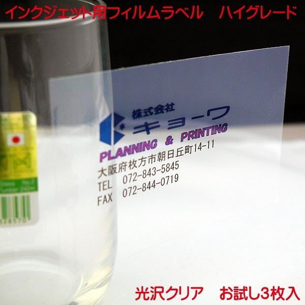 - インクジェット用 フィルムラベル クリア透明 A4 3枚入り ハイグレードタイプ film label