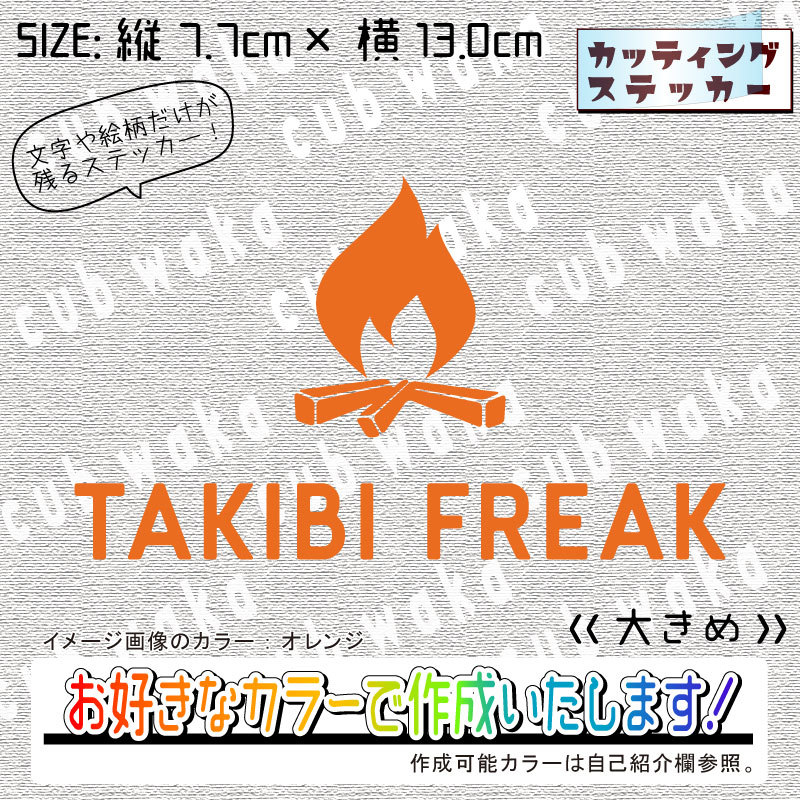 > TAKIBI FREAK①大ステッカー 文字絵柄だけ残るカッティングステッカー・車・カブ CAMP・キャンプ・焚き火 リアガラス・リアボックス