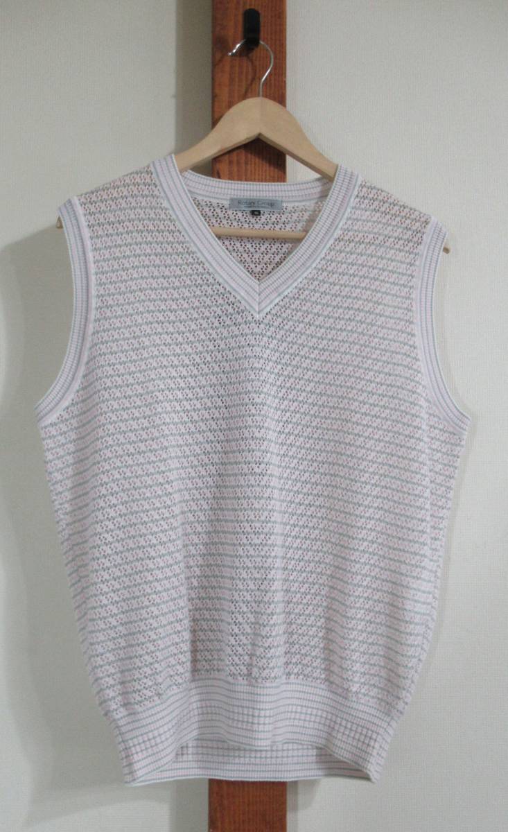 > 美品★Rotary Group/ロータリーグループ△ニットベスト 麻混 リネン混 ボーダー 編み柄 ピンク×グレー系 ろうたりーぐるーぷ