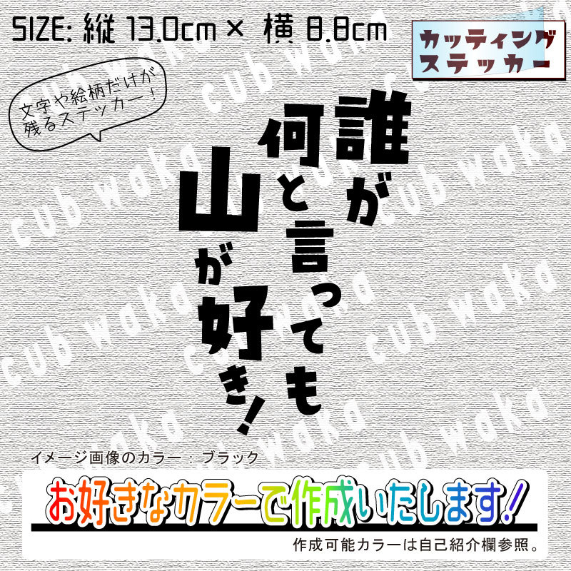 - 誰が何と言っても山が好きステッカー 文字絵柄だけ残るカッティングステッカー・カブ・車・バイク・二輪・トラック・リアガラス