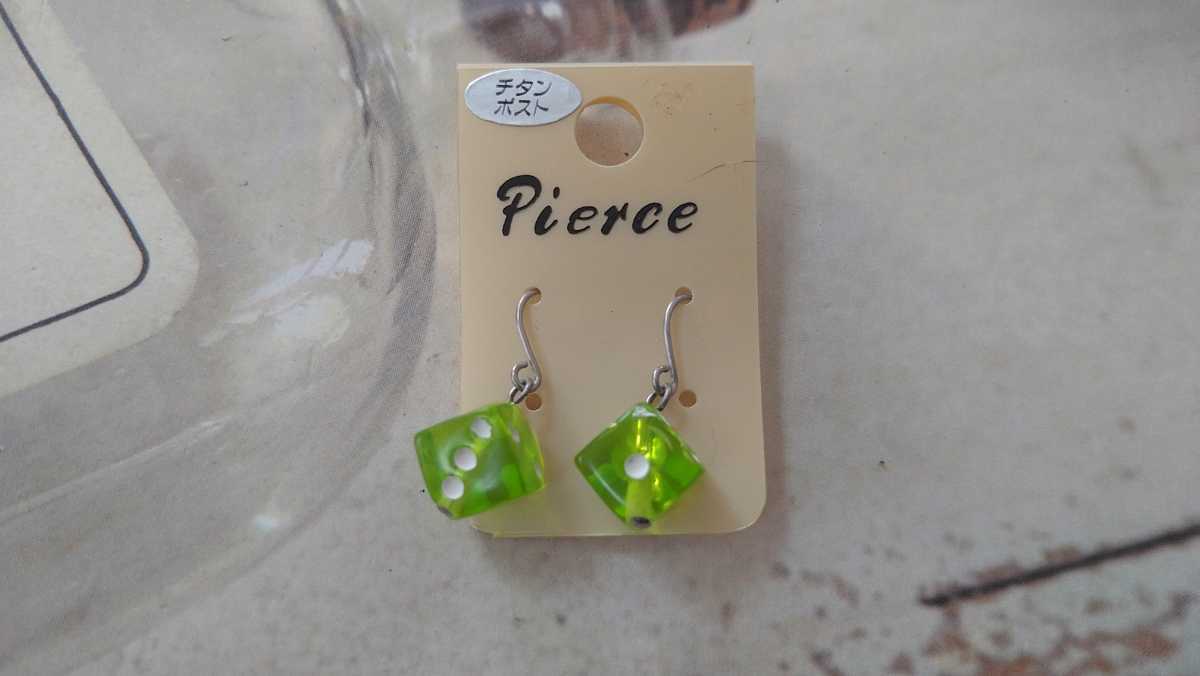 - □未使用□クリアライトグリーン・サイコロモチーフ ピアス□ダイスモチーフ□