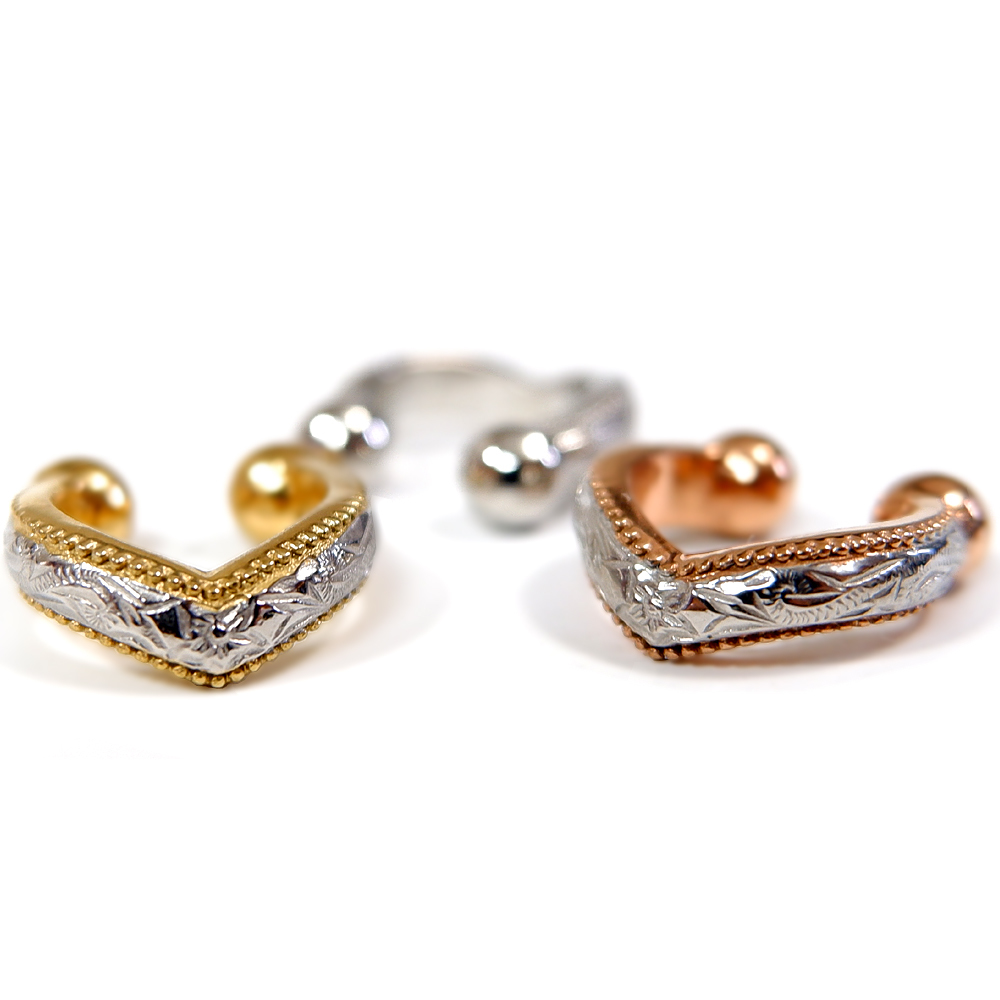 - ★片耳販売★ハワイアンジュエリー★アレルギー&温泉&海水浴ご使用OK★ステンレスイヤーカフ★Vラインコンビ&ピンクGD&ゴールド&シルバー