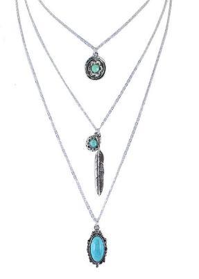 > ネックレス トリプルモチーフ ターコイズ (シルバー)3連 リゾート ウェスタン エスニック ボヘミアン イミテーション新品
