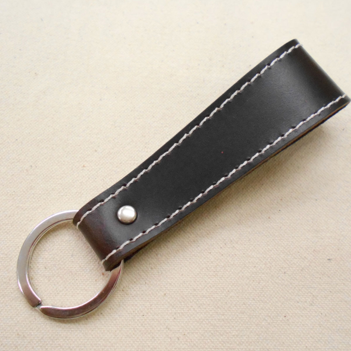 - 本革 キーホルダー ステッチ ベルトループ /こげ茶/キーリング ホルダー 革 レザー メンズ レディース 車 バイク