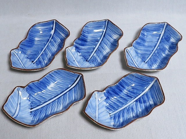 - 葉皿 永楽 5客 在銘 変形皿 時代