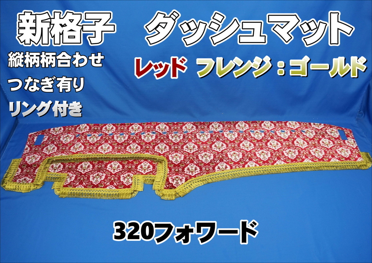 - 320フォワード用 新格子 縦柄 リング付き ダッシュマット レッド/ゴールド