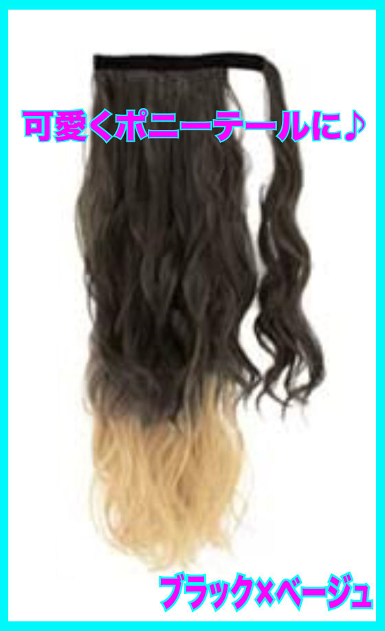 - [ブライトララ] ウィッグ グラデーション ポニーテール ロング ツートン ウェーブ ウイッグ ワンタッチ cy73x-K-BE ブラック×ベージュ