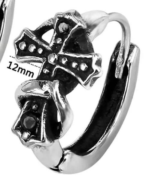 - ■送料込み即決■ ステンレス製 フープピアス クロス 十字架 ボディピアス リング 輪 ブラックストーン