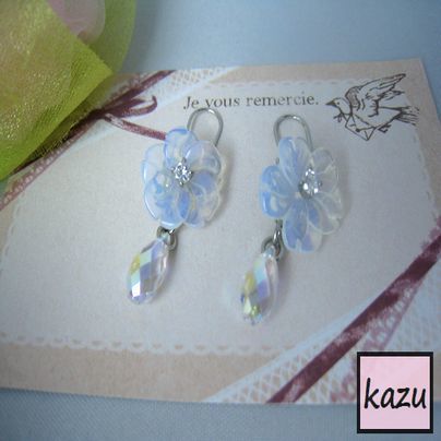 - ハンドメイド◆ラインストーン清楚なホワイトパールのお花ピアス