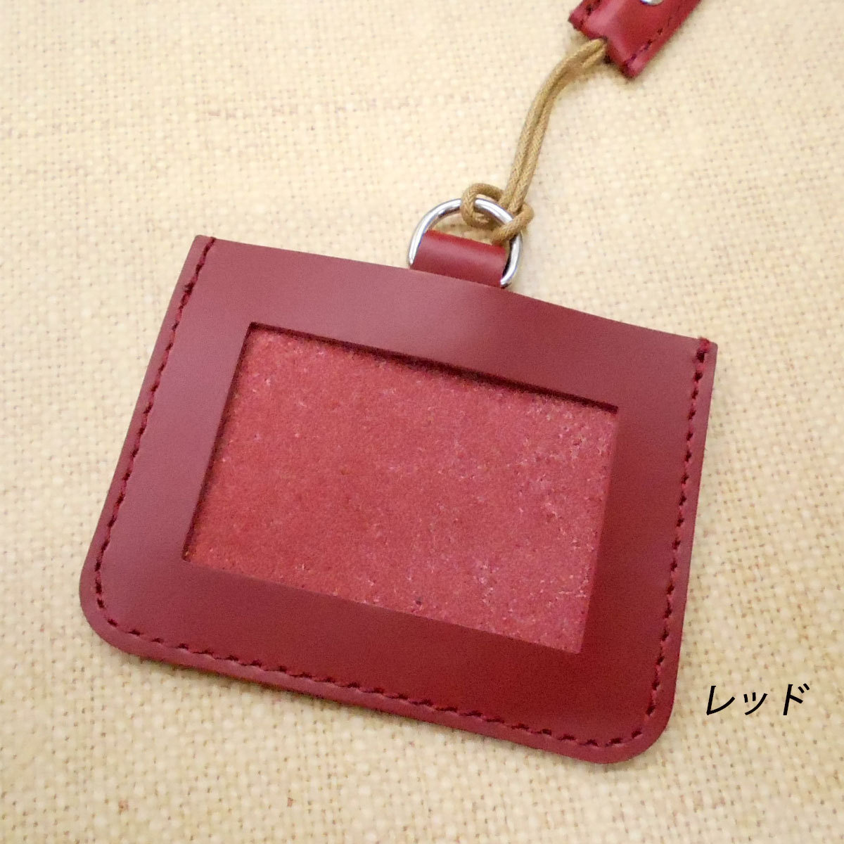 - 本革 パスケース 定期入れ /レッド/ネックストラップ付 ID IC 社員証 カードホルダー レザー 学生 レディース メンズ