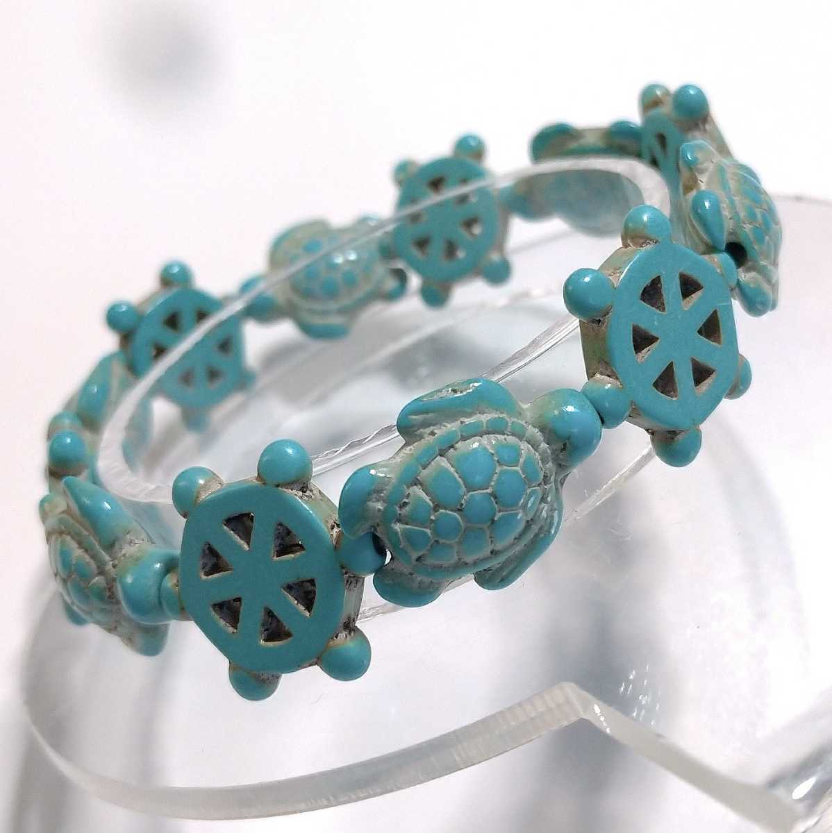 - 17cm ハウライトターコイズ 亀 ホヌ ブレスレット 舵 船 ウミガメ