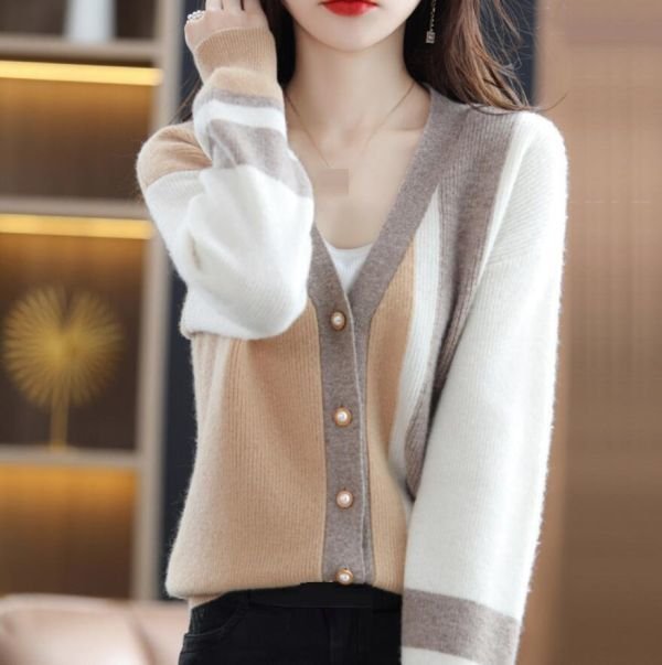 - PYD2377★Fサイズ♪秋冬 オシャレ ニットセーター 柔らかィガン 長袖 レディカシミヤ混 配色柄ースい 暖かい ニットカーデ ニットトップ