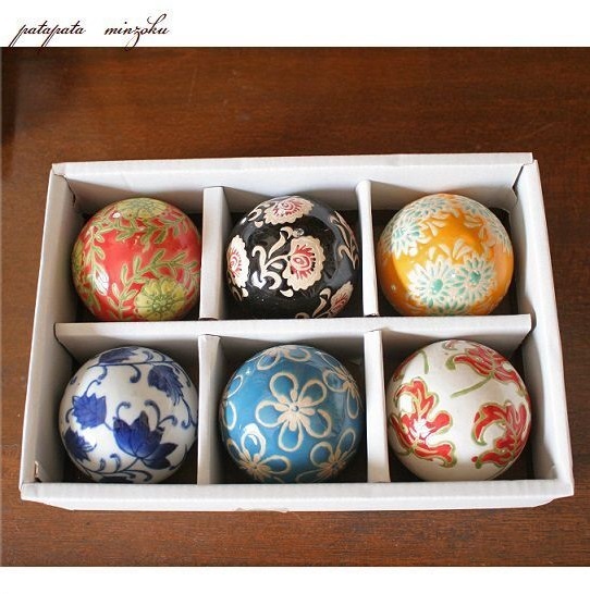 - 陶器 浮球 6球 セット 彩色 L 浮き球 ディスプレイ オブジェ 睡蓮鉢