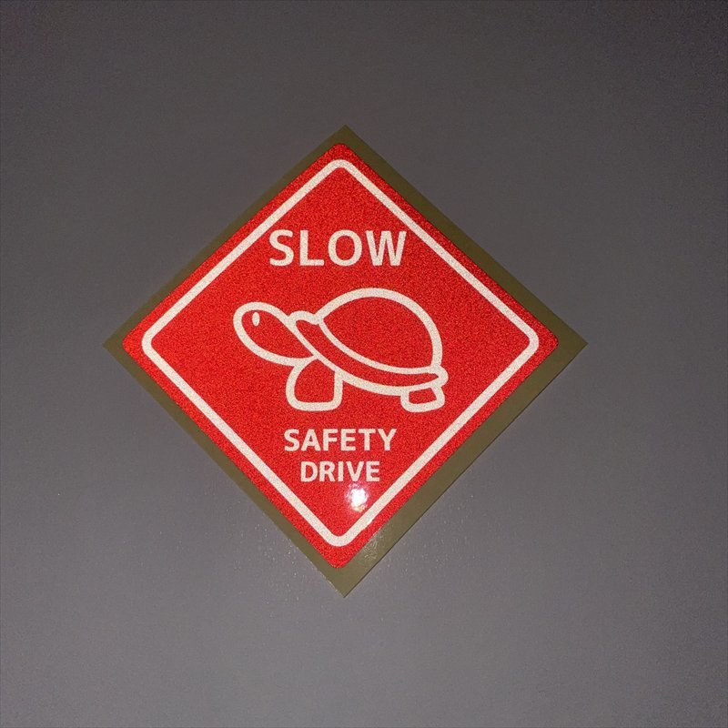 - (反射)セーフティ ステッカー カメ 11cm レッド ひし形 1枚 安全運転 オートバイ バイク シール デカール ワンポイント 面白