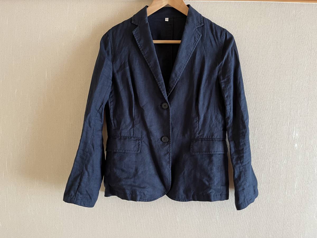 - ◆無印良品 MUJI リネン ジャケット ネイビー テーラード ブレザー 洗濯済み 匿名発送]