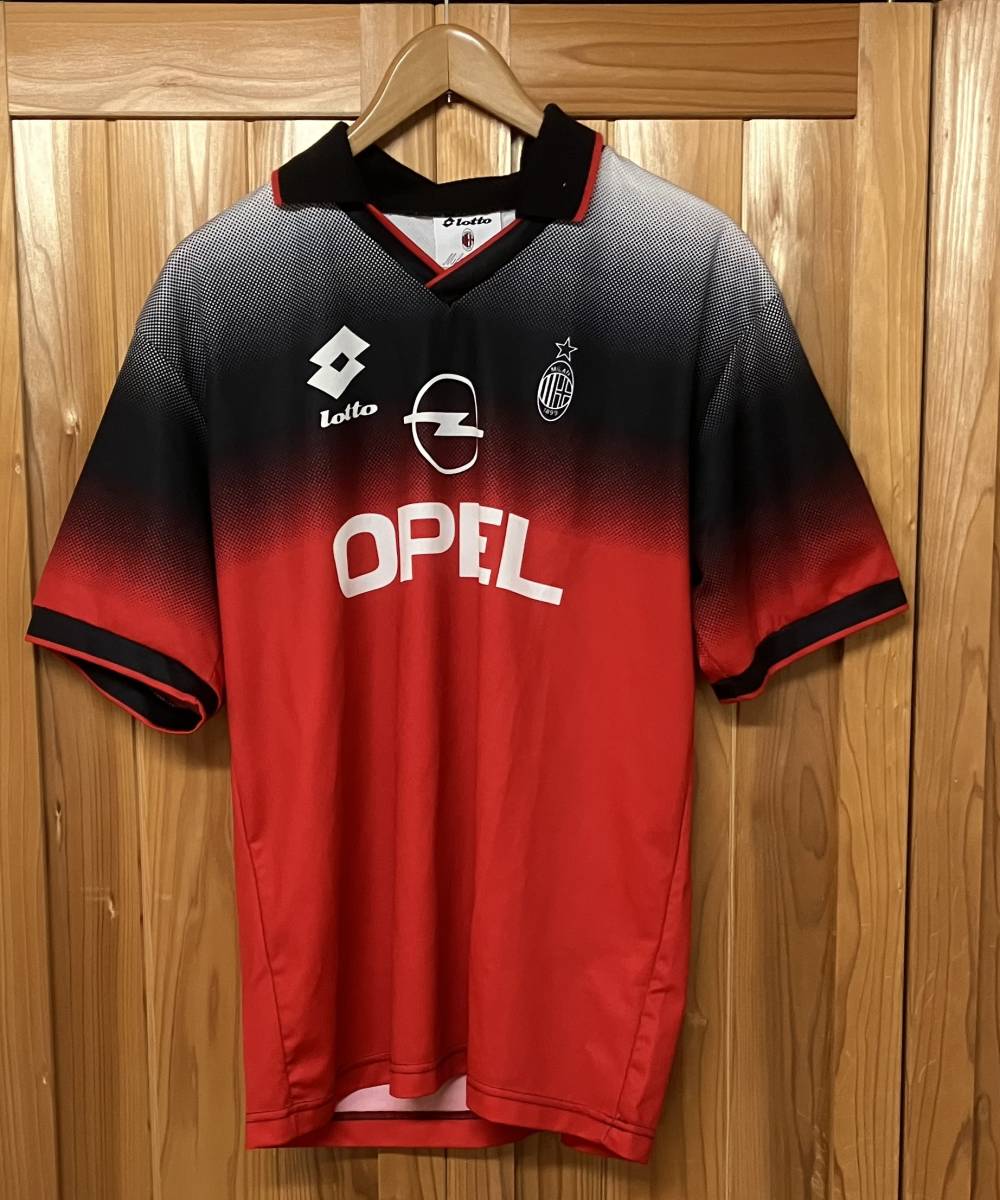 - セリエA ACミラン 1995-6 lotto プラクティスシャツ ロベルト-バッジョ ロッソネロ ロット 欧州Lサイズ イタリア スクデット