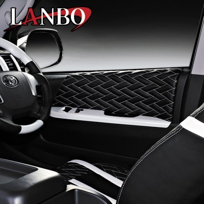 - アウトレット特価! LANBO ハイエース200系S-GL ドアレザーパネル ブラックレザー×シルバーステッチ LUXE-LDP001