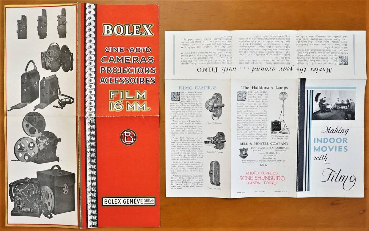 - BOLEX ボレックスシネカメラ / Filmo BELL&HOWELL ベルハウエル フィルモ / カタログ2枚 検:16ミリフィルムシネカメラ映画映写機 アクセ