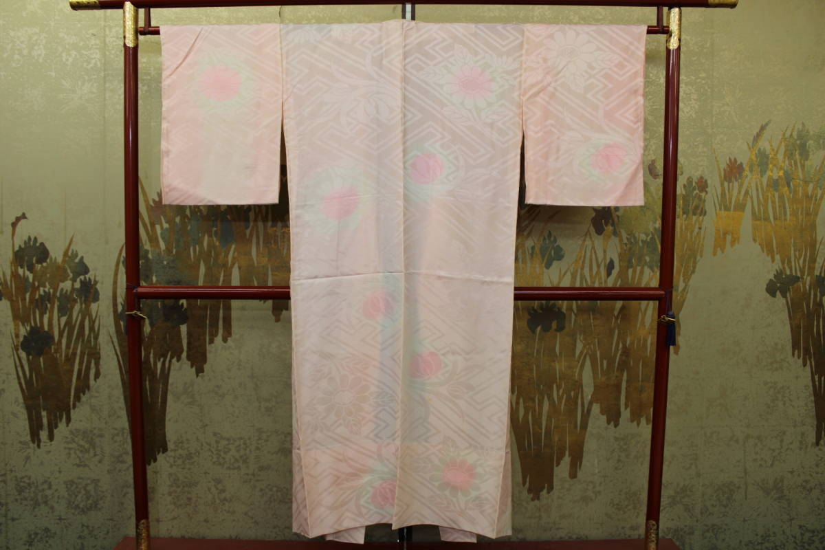 > きもの今昔4898 長襦袢 広衿袖無双身頃単衣仕立 正絹綸子地淡いピンクぼかし 身丈136cm 適応身長165~170cm