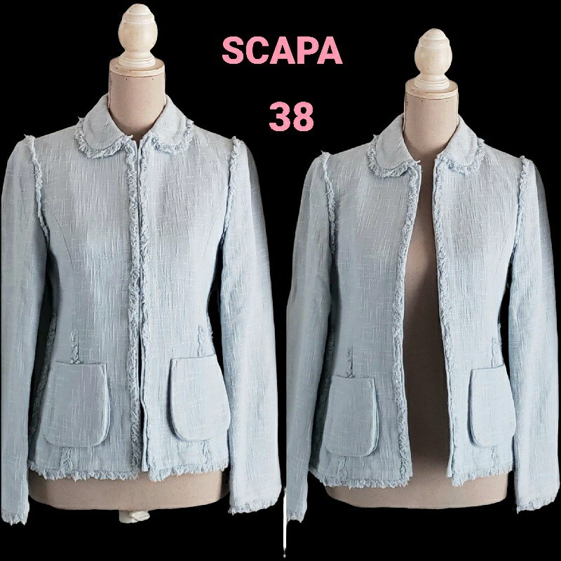 - 大変美品 SCAPA 可愛い春夏ジャケット コットン 麻混 パステルブルー
