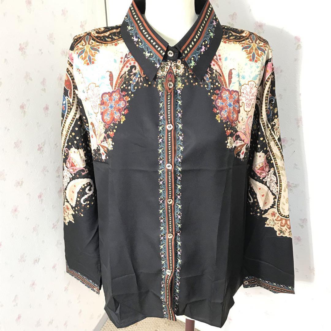 - 【ブラック★L】新作 シフォンブラウス 花柄シャツ 長袖