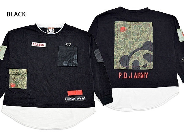 > パンダカモ切替フェイクレイヤードBIGロンTee◆PANDIESTA JAPAN ブラックLサイズ 561102 パンディエスタジャパン 迷彩 カモフラージュ