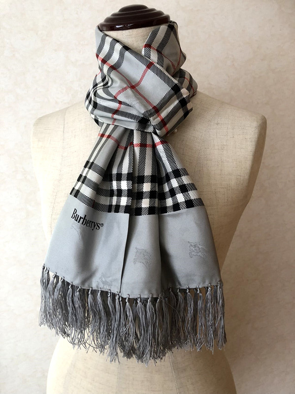- 国産品Burberry バーバリーノバチェック&定番ホースマーク織りロングシルク大判スカーフストール★35㎝×154㎝