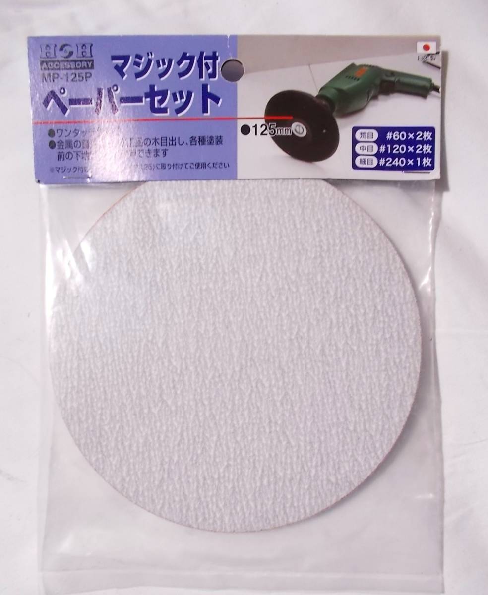 > マジック付ペーパー5枚セット(MP-125P)★円型125mm/荒目・中目・細目★三共コーポレーション/H&H★研磨・サンディング・サンドペーパー★