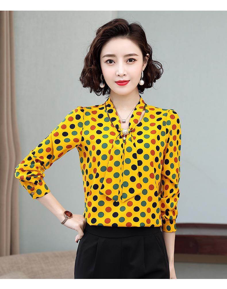- 【イエロー★Lサイズ】長袖シャツブラウス レディース