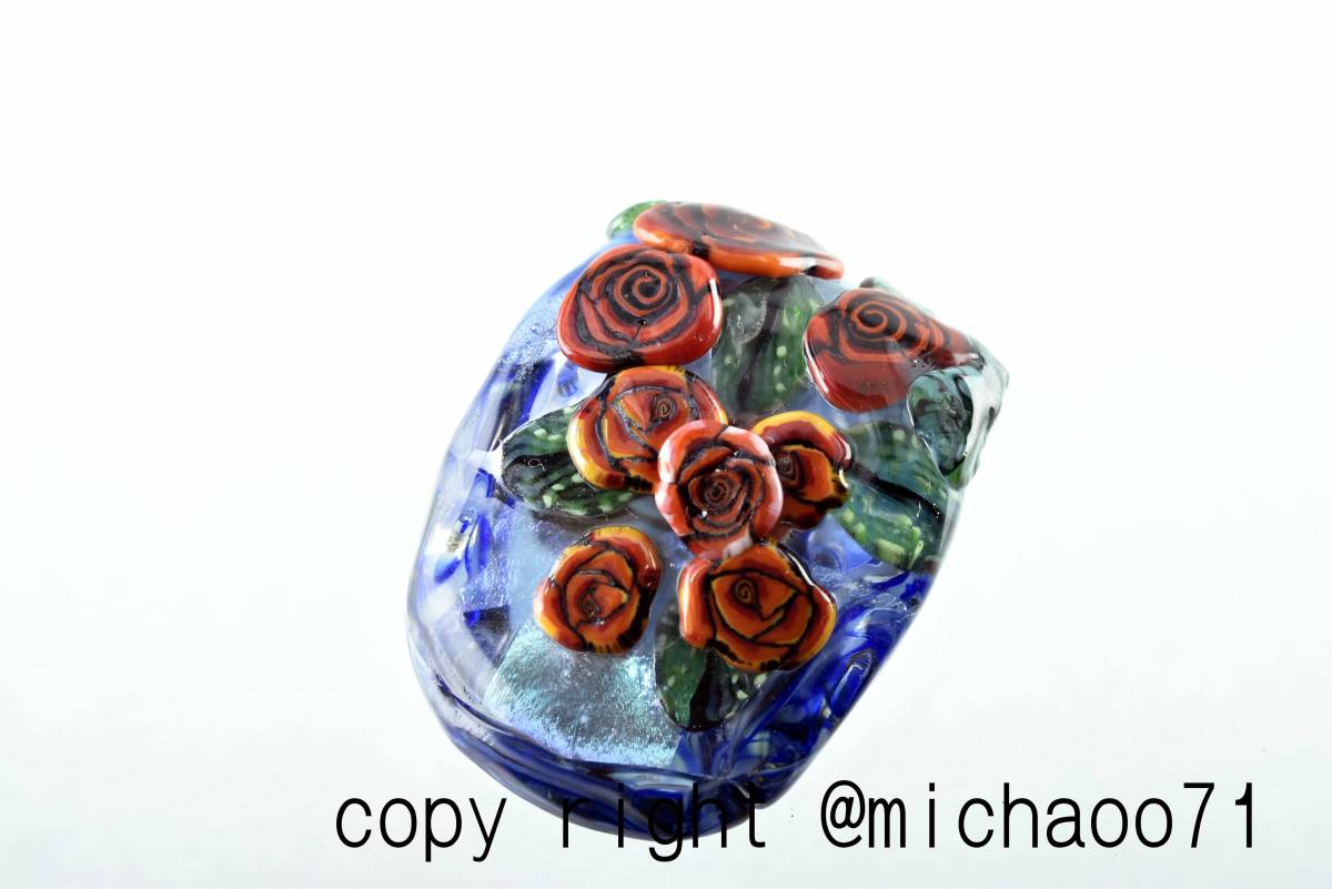- 創作トンボ玉 3種の赤い薔薇 アートガラスのジュエリー red rose ペンダントトップ(10750-489cr)作家物一点物