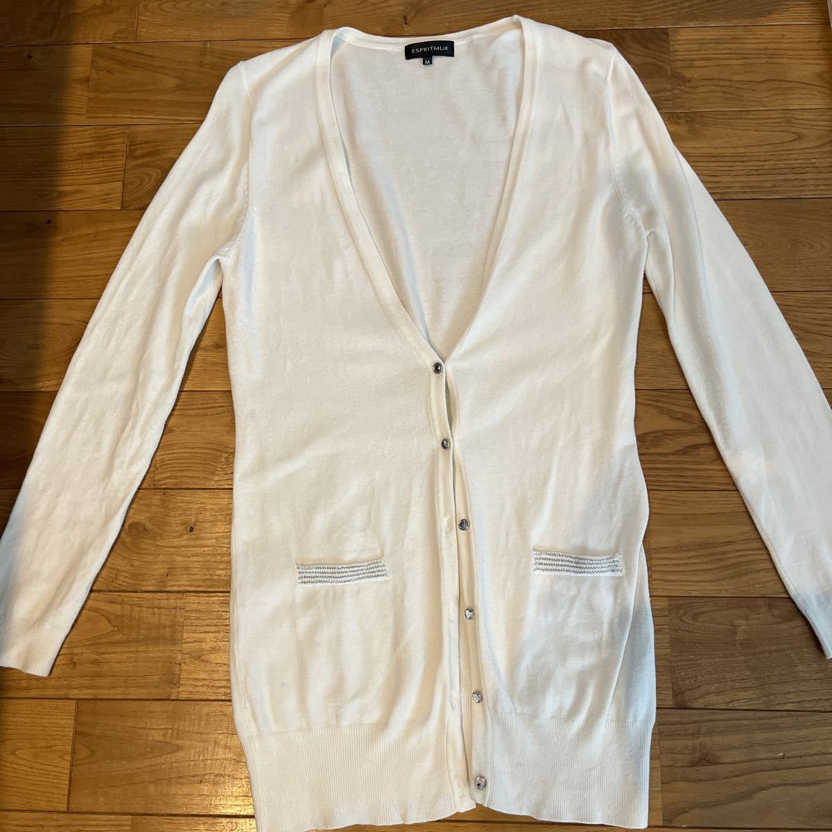 - 値下げ V カーディガン 白 サイズM ホワイト 透け感あり シアー