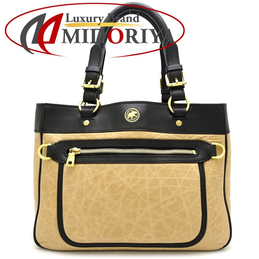> ハンティングワールド HUNTING WORLD ハンドバッグ ポリウレタン × レザー ベージュ ブラック / 350180【中古】