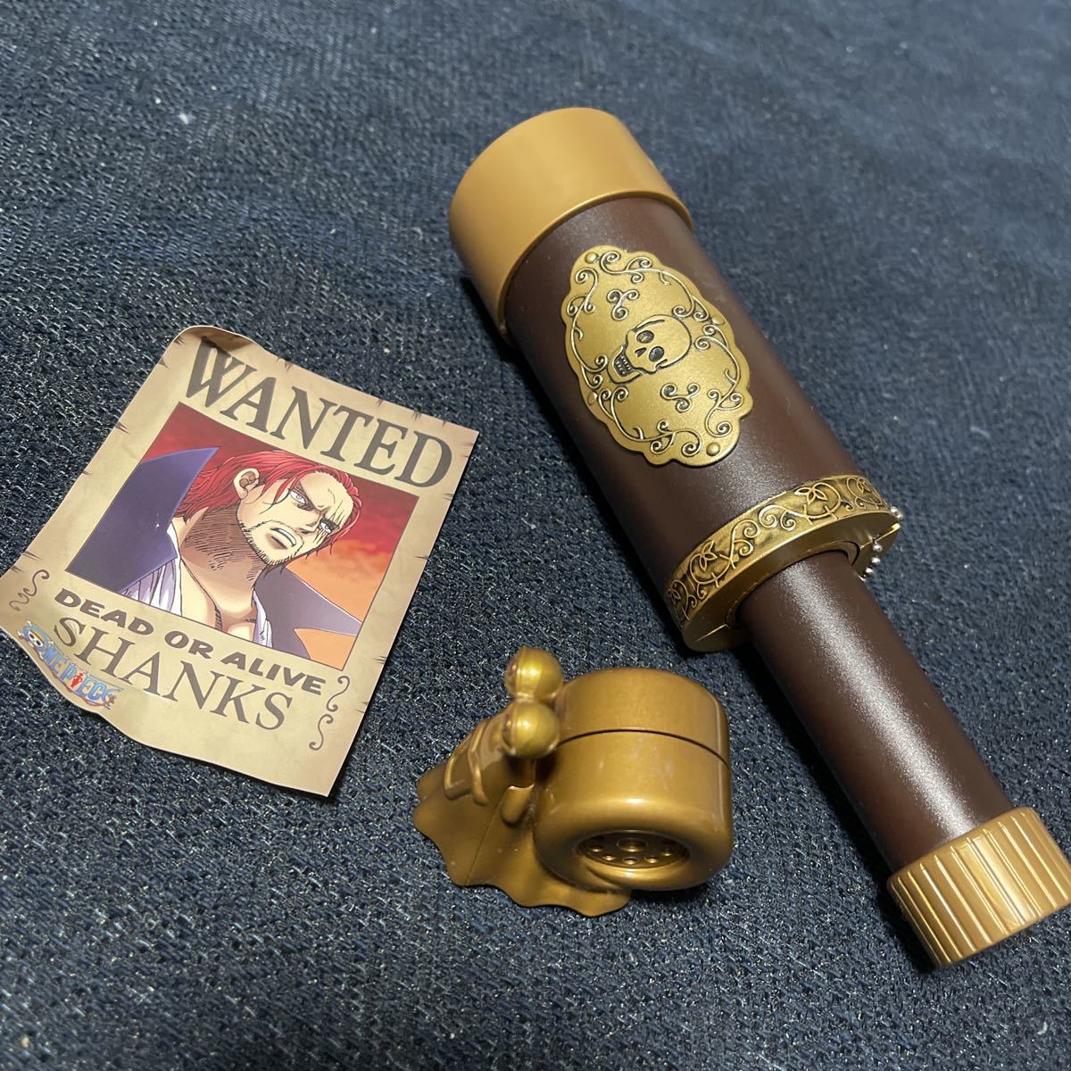 > ワンピース でんでん虫 カードスタンド バスターコールver 海賊風 双眼鏡 海賊銃 オマケ シャンクス 手配書