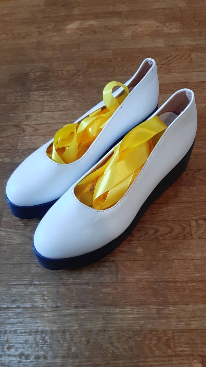 - No.2358_白とネイビーくるぶしリボン付きコスプレ用シューズ