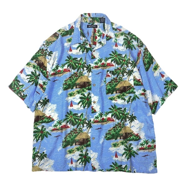 - 送料無料 90s ビンテージ ピューリタン レーヨン アロハ ハワイアン シャツ オーバーサイズ 風景柄 総柄 半袖 古着 90年代 PURITAN 2XL XXL