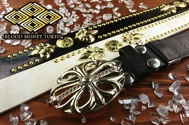 > ユリ×スタッズベルト ホワイト ゴールド mbt-22011 白 メンズ ファッション ヤクザ ヤンキー オラオラ系 ホスト アメカジ 派手