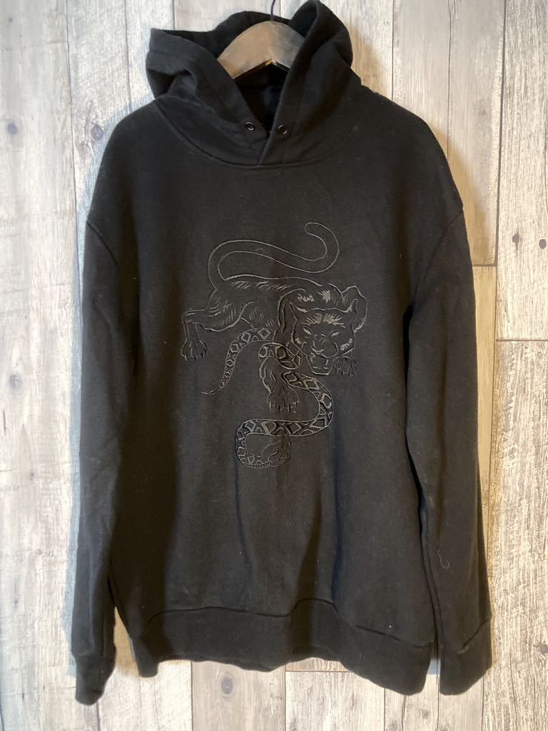 - 刺繍入り! ■送料込み即決■ H&M 虎 × 蛇 トレーナー フーディー エイチアンドエム ブラック 黒 刺繍デザイン ドロップショルダー 裏起毛