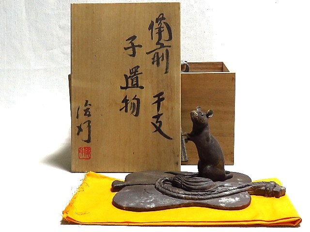 - 備前子置物 乗松俊行 共箱 共布 干支置物 備前焼
