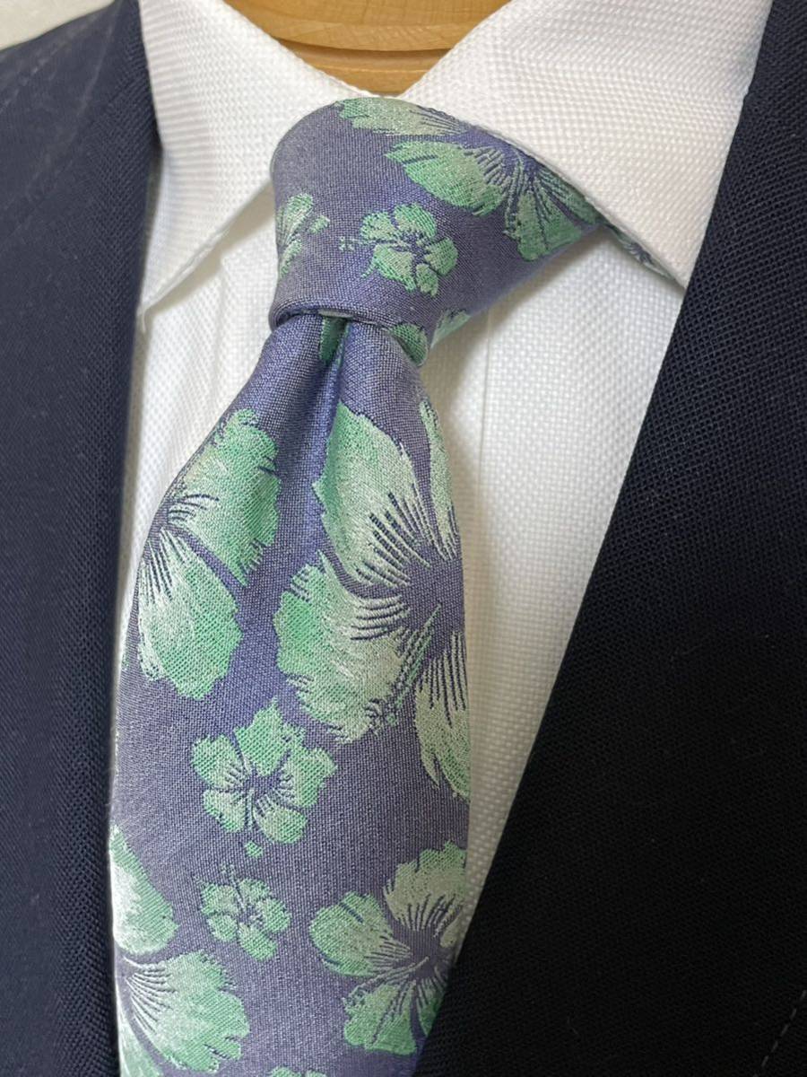 - 【美品】STEFANO CONTI(ステファノコンティ)ハンドメイド ネクタイ COMO地区発 イタリア製 大剣約7.5cm コットン夏らしいハイビスカス