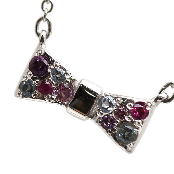 > STAR JEWELRY スタージュエリー リボンモチーフネックレス 約40cm K18WG 18金 ホワイトゴールド 20096