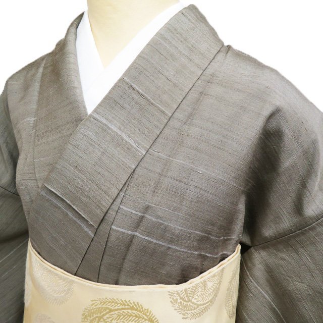 > ★きもの北條★ 紬地 横線模様 穏やかな風合い 灰汁色 着物 A815-11 M 【中古】