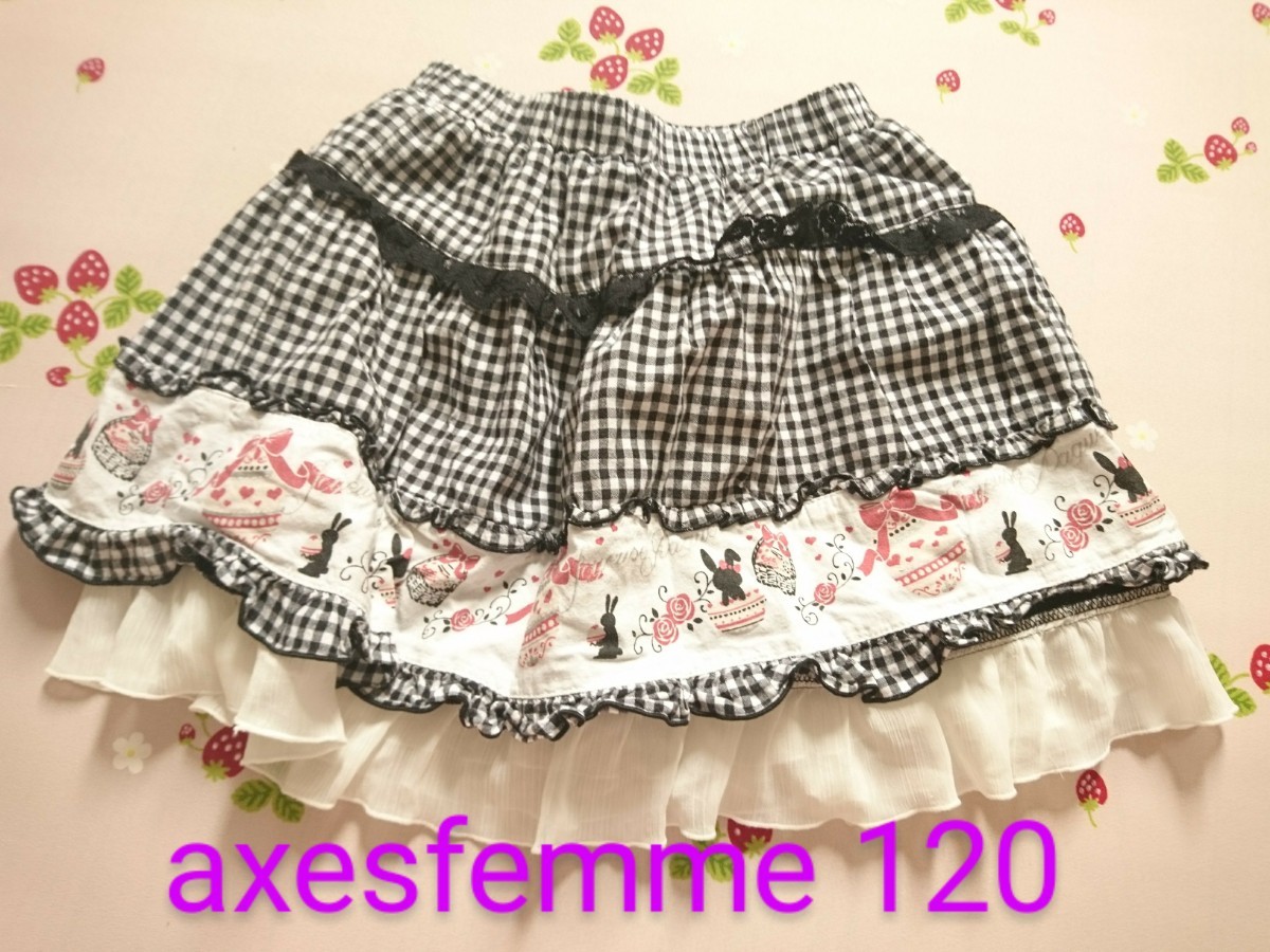 - 120 axesfemme アクシーズファム スカート うさぎ チェック モノトーン 黒 レース ガーリー