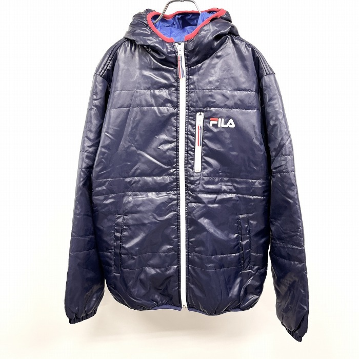 - フィラ×ジョージア FILA×GEORGIA 中綿 ジップジャケット パーカー ロゴプリント 長袖 ポリ100% ネイビー×ピンク×ホワイト 紺 メンズ